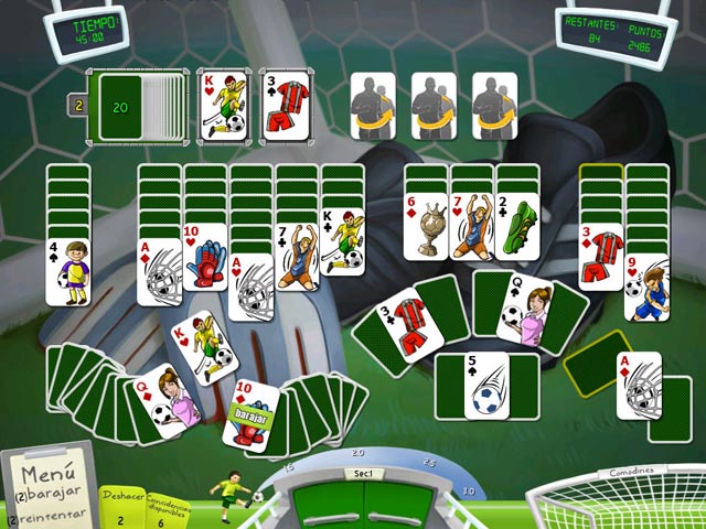Consigue la victoria en este juego donde el deporte más famoso del mundo se combina con el pasatiempo favorito de todo el mundo. Logra emparejar los naipes para obtener puntos suficientes y anotar un gol. ¡Prepárate para enfrentarte a equipos como Brasil, Inglaterra, España, Estados Unidos y pelea por la victoria!