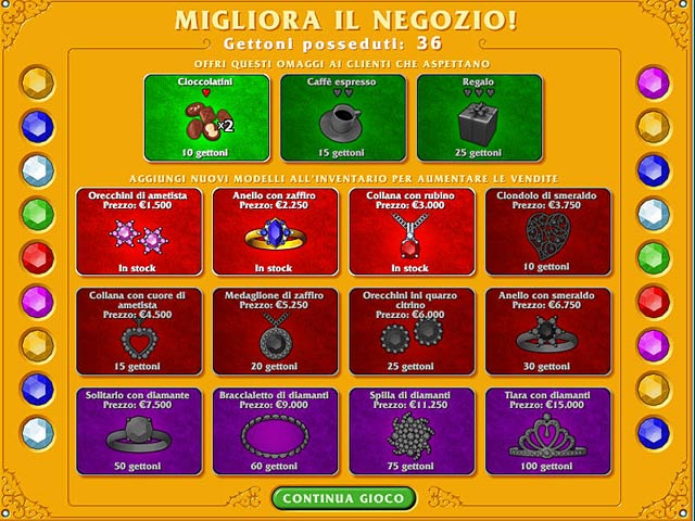 Abbina gemme coloratissime e soddisfa i tuoi clienti! Vendi gemme e gioielli ai tuoi clienti sorridenti, ma fai attenzione: se li fai aspettare troppo cominceranno a spazientirsi, soddisfali e invogliali all'acquisto! Gettoni speciali ti consentiranno di migliorare il tuo negozio, aggiungendo altri gioielli e dolcetti per i clienti. Ricorda: i clienti felici spendono di più e terranno il tuo negozio sulla cresta dell'onda!