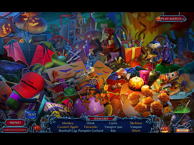 This game is English only.Big Fish Editor's Choice! This title was selected for its exceptional quality and overwhelmingly positive reviews from our Game Club beta testers. Domini Games presents another spooky story for the Halloween season with an extraordinary new chapter in the Halloween Chronicles series! Your parents don't talk much about whatever happened to Uncle Pierre, so when he invites you to visit his fair and meet his family for Halloween, you jump at the chance to see him again. But you're not there long before you realize that something is wrong. Pierre was always a little odd, but not like this. His family doesn't even know what he's up to, but they're glad you're there to help solve the mystery and hopefully defeat the evil that threatens the entire town! Prepare your seeking skills and puzzling powers for this offbeat new Hidden-Object Puzzle Adventure that’s full of surprises! This is a special Collector's Edition release full of exclusive extras you won’t find in the standard version. As a bonus, Collector's Edition purchases count toward three stamps on your Monthly Game Club Punch Card! The Collector’s Edition includes: